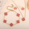 3 szt. stal tytanowa nie blaknąca dwustronna koniczynka zestaw naszyjnik bransoletka kolczyki