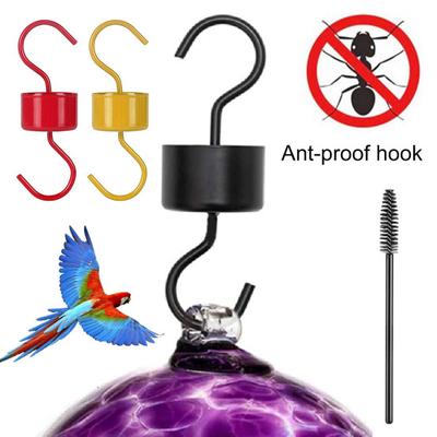 Wieszak na karmnik dla ptaków, wytrzymały, maksymalna ładowność, dwie głowice, osłona anty-mrówkowa, hak w kształcie litery S, zewnętrzny uchwyt na karmnik dla kolibrów ze szczotką