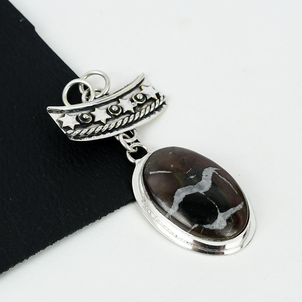 Natural Septarian Gemstone Silver Pendant in 925 Sterling Silver- Handmade Design, Everyday Wear Jewelry, Unique Septarian Pendant Wadding Gifts