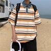 Męska koszulka polo w paski Harajuku - Modna, luźny krój, casualowy styl hip-hopowy