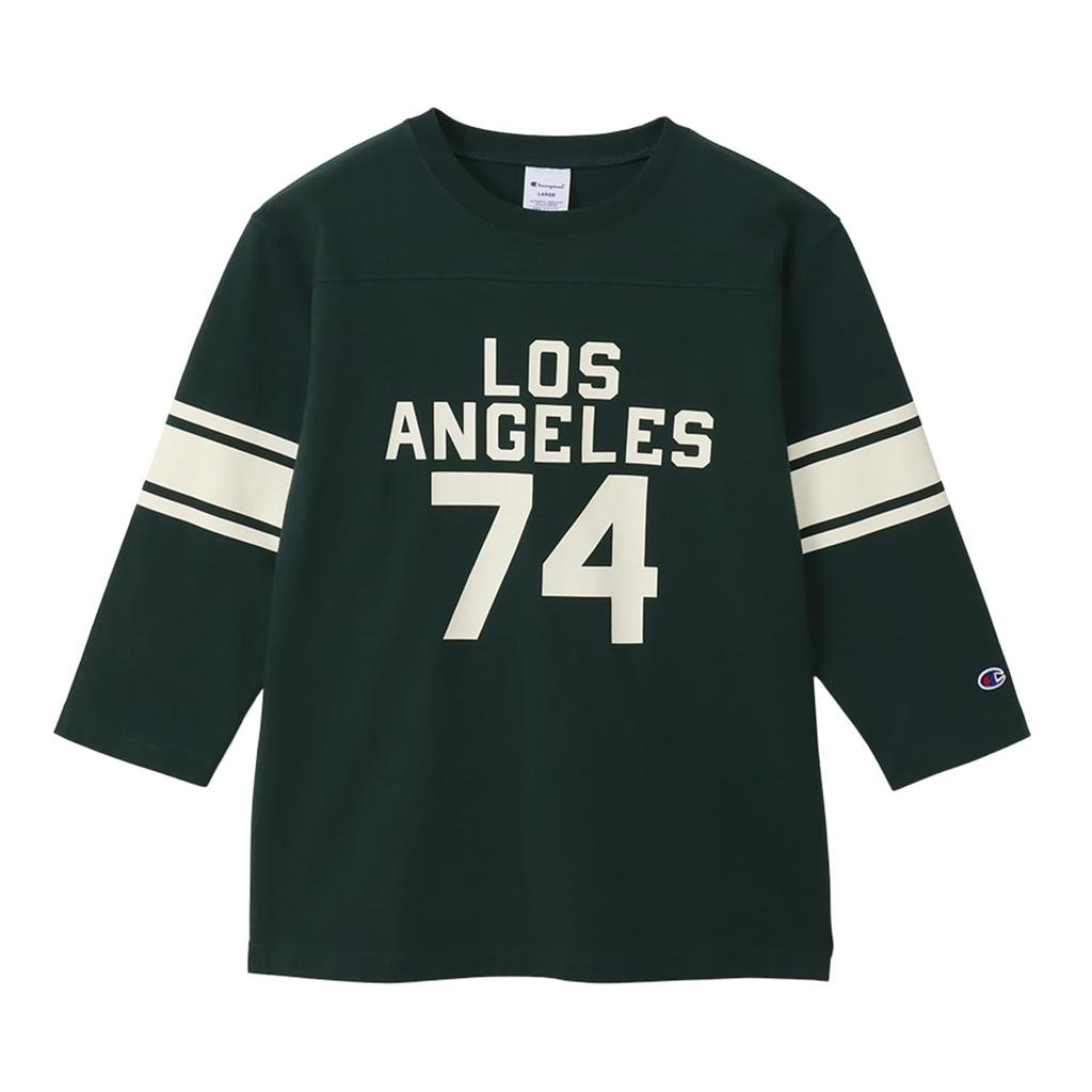 Rękaw Okrągły Dekolt Bawełna USA Nadruk Graficzny Piłka Nożna Podstawowy Ciemnozielony L [Champion] 3/4 100% Koszulka C3-A421 Męska