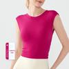 Damska koszulka fitness bez pleców z krótkim rękawem i wszytymi miseczkami - Wyszczuplający top do jogi i sportu