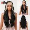 Długie falowane czarne ombre brązowe peruki z grzywką syntetyczna naturalna falowana peruka dla czarnoskórych kobiet odporna na ciepło sztuczne włosy peruka cosplay