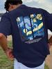 Men'S Summer Fashion Casual T-Shirt, Geometric Night Print, Crew Neck, Knit Fabric