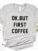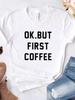 Damska Koszulka OK ALE NAJPIERW KAWA Nadruk z Literami Koszulka Damska Krótki Rękaw Okrągły Dekolt Luźna Koszulka Damska Codzienna Koszulka