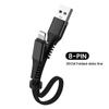 3A szybki kabel USB do ładowania iPhone'a 14 13 12 11 Pro Max 30 cm składany Micro USB/typ C/8-pinowy przewód szybkiego ładowania krótki kabel danych