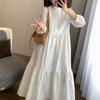 ZANZEA Damska codzienna sukienka maxi z długim rękawem, luźna, z koronkową szydełkową wstawką patchworkową