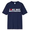 Vintage Zabawny Koszulka I Love My Hot Girlfriend Boyfriend Para Graficzna Koszulka Męska Chłopaków Bawełniana Casualowa Sportowa Streetwear