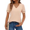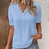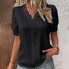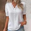 Damska Letnia Koronkowa Koszula z Dekoltem w Serek, Gładka Koronkowa Elegancka Koszula, Modna Jednokolorowa Elegancka Bluzka z Krótkim Rękawem, Wygodny Miękki T-shirt Top Dla Kobiet