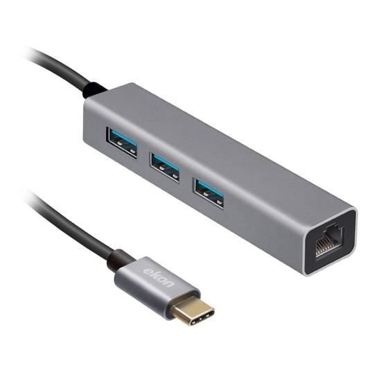 Hub usb-c - ekon - aluminium - 3 ports usb 3.0 - port ethernet rj45 - vitesse 5gbps