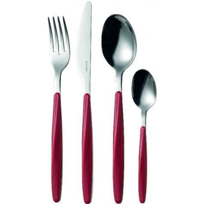 Couverts - guzzini - my fusion rouge - 24 pièces - abs et inox 18/10 - lavable au lave-vaisselle
