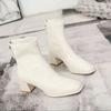 Damskie botki z kwadratowym noskiem, rozciągliwe, cienkie, średnie obcasy, czarne/brązowe/beżowe, zapinane na suwak z tyłu, buty typu skarpetka, rozmiar 34-40