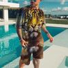Size:4XL,Shoulder:58cm,Bust:138cm,Length(Tops):84cm,Sleeve:25cm,length(pants):59cm,waist:114cm,Hip:150cm