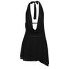 AC611 Damska seksowna sukienka halter bez pleców: 2024 Jednolity Kolor Dekolt V Nierówny Wzór