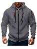 Jesienno-zimowa męska kurtka z kapturem, solidna, zapinana na zamek, sportowa kieszeń, Casual, szara bluza, kardigan