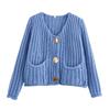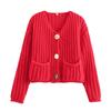 Odkryj idealne połączenie stylu i komfortu dzięki tej modnej dzianinowej kurtce swetrowej, idealnej na sezon jesienno-zimowy.. Wykonany z wysokiej jakości poliestru, ten element oferuje jednolity wzór i dopasowany krój dla podkreślenia sylwetki.. Dekolt w serek dodaje odrobinę elegancji, a długie rękawy zapewniają ciepło.. Wyposażony w szykowny design z trzema guzikami, posiada duże kieszenie dla dodatkowej wygody.. Dostępna w 15 urzekających kolorach, ta kurtka w stylu europejskim i amerykańskim bezproblemowo uzupełnia każdą garderobę.