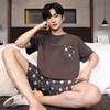 Piżama męska bluzki z krótkim rękawem szorty kreskówka bielizna nocna odzież wypoczynkowa studenci dwuczęściowa w paski jednolita młodzieżowa odzież nocna odzież domowa