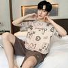 Letnie cienkie bawełniane dzianinowe bluzki z krótkim rękawem i szorty Męskie zestawy piżamowe koreańska piżama tie-dye dla mężczyzn Stroje do spania Odzież domowa
