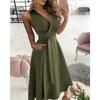IHUASU Moda Wiosna Lato Sukienka z Długim Rękawem Dekolt V Nadruk Kieszeń Biodra dla Kobiet