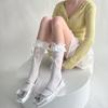 Damskie Letnie Mlecznobiałe Ażurowe Koronkowe Skarpetki - Lekkie Długości Do Łydki w Stylu JK Mary Jane