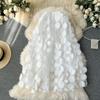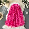 Letnia Elegancka Spódnica Midi z Wysokim Stanem i Kropkami w Kwiaty 3D