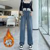 Damskie pluszowe ciepłe dżinsy z wysokim stanem i szerokimi nogawkami - styl amerykański, edycja jesienno-zimowa