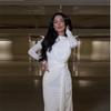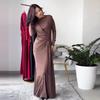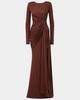 Nowa seksowna, modna, jednokolorowa, dopasowana sukienka z plisowaną talią i okrągłym dekoltem