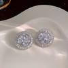 Eleganckie Geometryczne Okrągłe Kolczyki Cyrkoniowe - Proste, Modne, Wszechstronne Srebrne Sztyfty