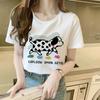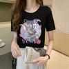 Front Shoulder Pure Cotton Printed T-shirt Women's Top Black Short-sleeved Summer New Loose Base Shirt