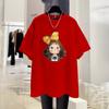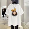 Biała Koszulka z Krótkim Rękawem dla Kobiet Damska Luźna Letnia Nowa Duży Rozmiar Dopasowana Kreskówkowa Dziewczęca Średniej Długości Czysta Bawełna Top