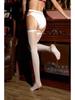 Seksowne kontrastowe pończochy do paska: Biały z Czerwonym Wykończeniem, Czarny Jedwab, Ultracienki Oleisty Prześwitujący