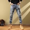 Męskie jeansy slim-fit w jasnoniebieskim kolorze z dziurami - Modny styl na wiosnę i jesień