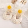 Ręcznie robione kolczyki z rattanu w kształcie kwiatów - Retro styl koreański, Słodki wróżkowy design
