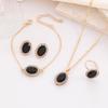 Europejski i Amerykański Zestaw Biżuterii Ślubnej z Owalnymi Diamentami w Kształcie Kropli Wody: Naszyjnik, Kolczyki i Pierścionek.