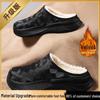 Męskie czarne bawełniane kapcie z aksamitu na obcasie, pogrubione dla ciepła, wodoodporne do noszenia na zewnątrz zimą. Odpowiedni dla nastolatków.