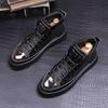 Srebrne i Złote Męskie Modne Sneakersy High-Top - Modne, Dodające Wzrostu Buty Casualowe