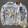 Męska kurtka dżinsowa slim z retro haftem - Moda wiosenno-jesienna