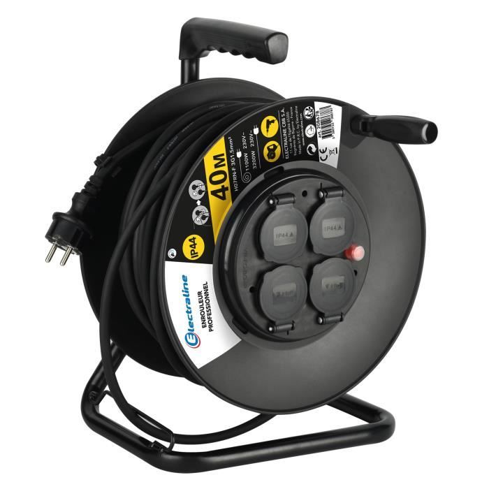 Enrouleur - electraline - 28907 - 15m - 4 prises 16a - utilisation domestique et professionnelle