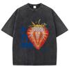 Codzienne damskie T-shirty Acid Wash Świeże nadruki truskawkowe Topy Postarzane Oversize Bawełniane koszulki Trend Damskie ubrania