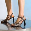 Letnie Damskie Sandały na Obcasie Rybi Palec Elegancka Moda Casual Buty Seksowne Wysokie Obcasy Taniec Zebra Panterka Kolor Nowe Trendy