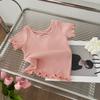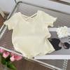 Dziewczęca Moda T-shirt z Krótkim Rękawem z Krzyżem na Plecach Letni Dziecięcy Casualowy Top w Jednolitym Kolorze