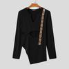 INCERUN Męskie T-shirty z dekoltem V, długim rękawem, wycięciem, nieregularne, casualowe, slim, podkoszulki