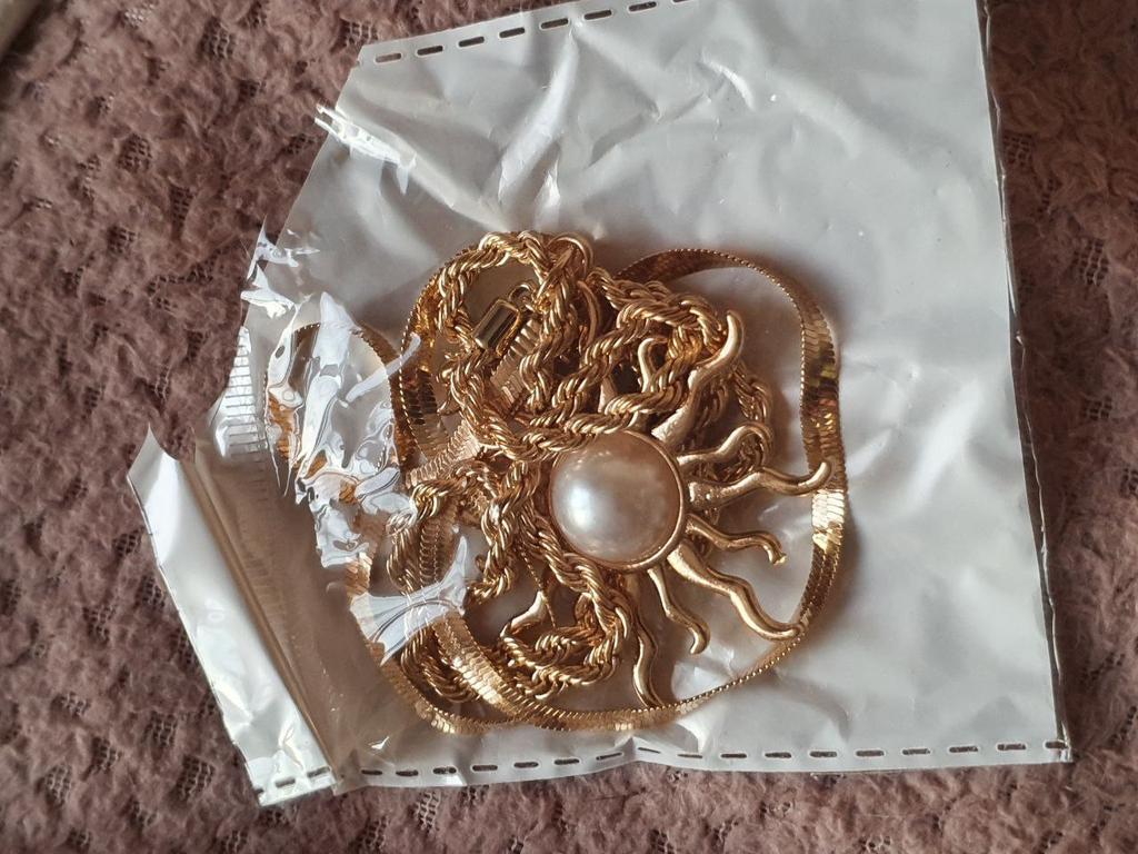 Łańcuszek w kształcie kości węża, wisiorek w kształcie płomienia słońca, podwójny naszyjnik