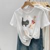 Harajuku śmieszny kreskówkowy T-shirt z krótkim rękawem Kobiety Lato czysta bawełna Casualowy oversize T-shirt koreański Streetwear biały Y2k Tops