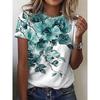 Letnia damska koszulka z krótkim rękawem, kwiatowym nadrukiem, świątecznym, 3D, codziennym, z krótkim rękawem, modna, z okrągłym dekoltem, dla kobiet