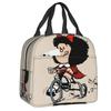 Szczęśliwa Jazda na Rowerze Mafalda Lunchbox dla Kobiet Kreskówkowy Termiczny Izolowany Torba na Lunch Dzieci Szkoła Dzieci Piknik Torby Tote