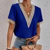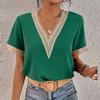 Fashion Women Summer Solid Color T-Shirts Hollow Out Design Lace V-Neck Short Sleeve Casual Loose Pullovers Tops Tees
