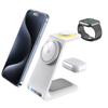 Bezprzewodowa podstawka ładująca pełni funkcję mini podstawki, utrzymując i ładując Twojego iPhone'a, Apple Watcha i AirPods w jednym miejscu, pomagając Ci skończyć z bałaganem kabli i uporządkować biurko.. 3 doki ładujące dla różnych opcji ładowania zgodnie z potrzebami.