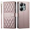 Etui dla Xiaomi Redmi Note 13 Pro 4G/Poco M6 Pro 4G, Pikowanie w romby, Portfel ze stojakiem, Skórzany pokrowiec na telefon z długim/krótkim paskiem
