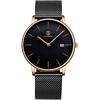 Zegarek Prosty Stylowy Cienki Casualowy Wyświetlanie Daty Wodoodporny Analogowy Kwarcowy Pasek Mesh Czarny [BEN NEVIS] Męski